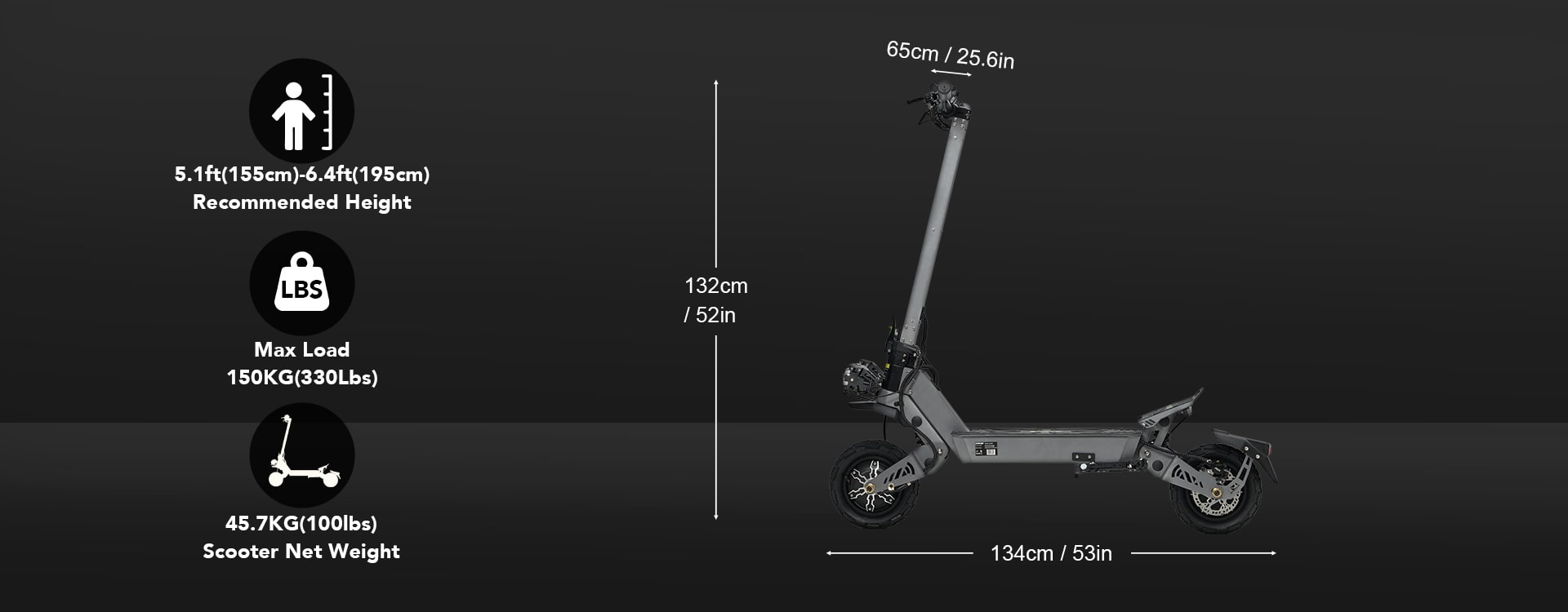 • Dual 1800W Motors – Strong acceleration & hill-climbing ability